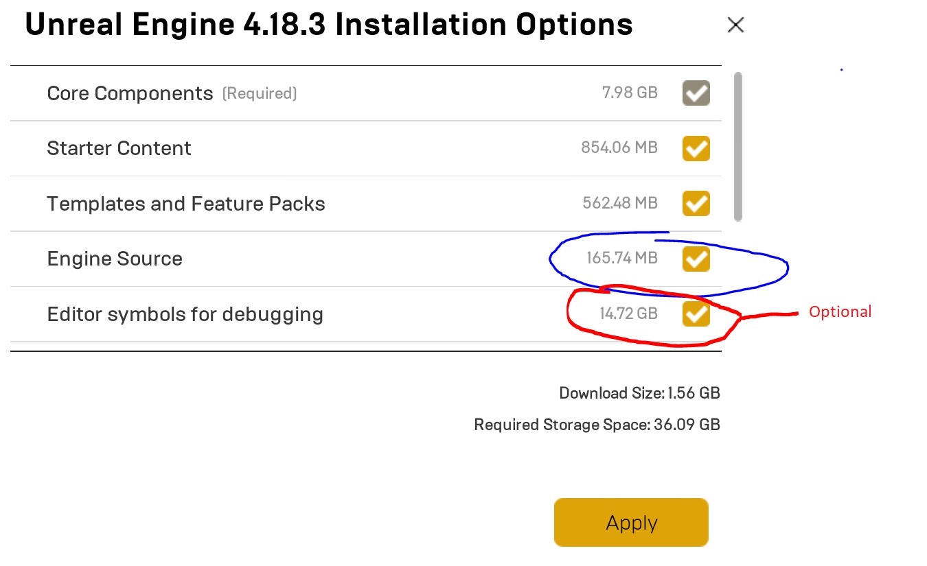 Optionally download Unreal sources and debugging symbols in the Epic Launcher
